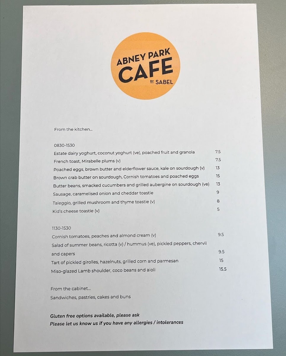 Abney Park Cafe by Sabel Menu